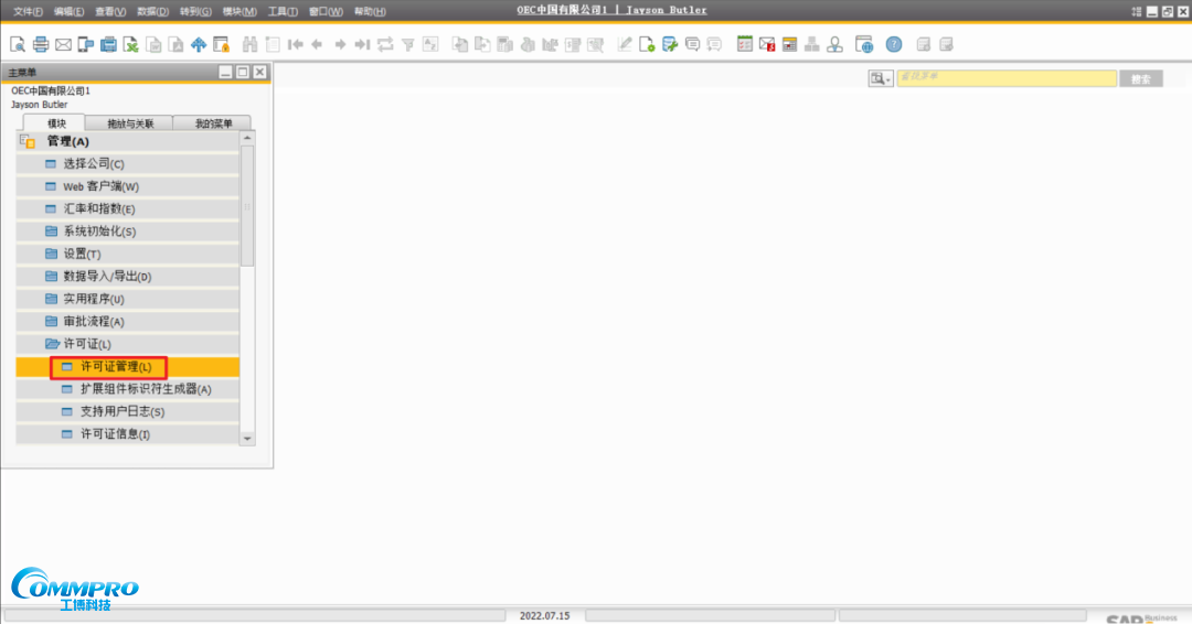 第一步:點(diǎn)擊【管理】-【許可證】-【許可證管理】。
