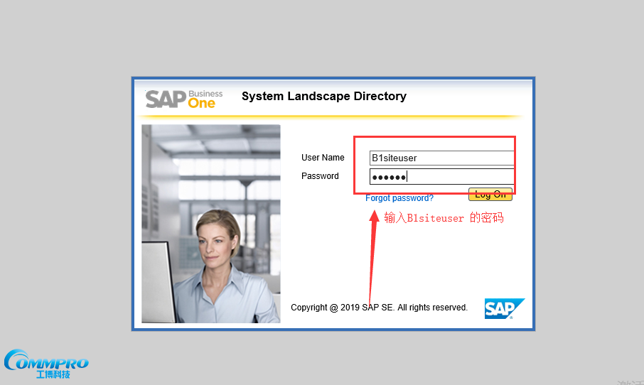 第二步:輸入用戶B1siteuser和對應(yīng)的密碼進行登錄。
