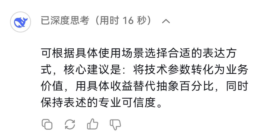 業(yè)務(wù)部門領(lǐng)導(dǎo):“方案里的技術(shù)原理我認(rèn)可,但實(shí)際優(yōu)勢是什么?比如節(jié)省時間、降低成本或者提高效率?”