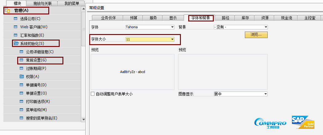 B1,選擇【管理】模塊中的【系統(tǒng)初始化】,點擊【常規(guī)設置】。在常規(guī)設置中,選擇【字體和背景】,在【字體大小】處調整為合適的大小即可。