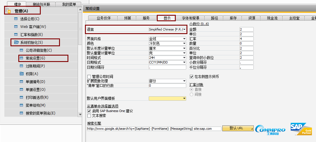 打開B1系統(tǒng),選擇【管理】模塊中的【系統(tǒng)初始化】,點(diǎn)擊【常規(guī)設(shè)置】。在常規(guī)設(shè)置中,選擇【顯示】頁面,在【語言】處選擇您要切換的語言。